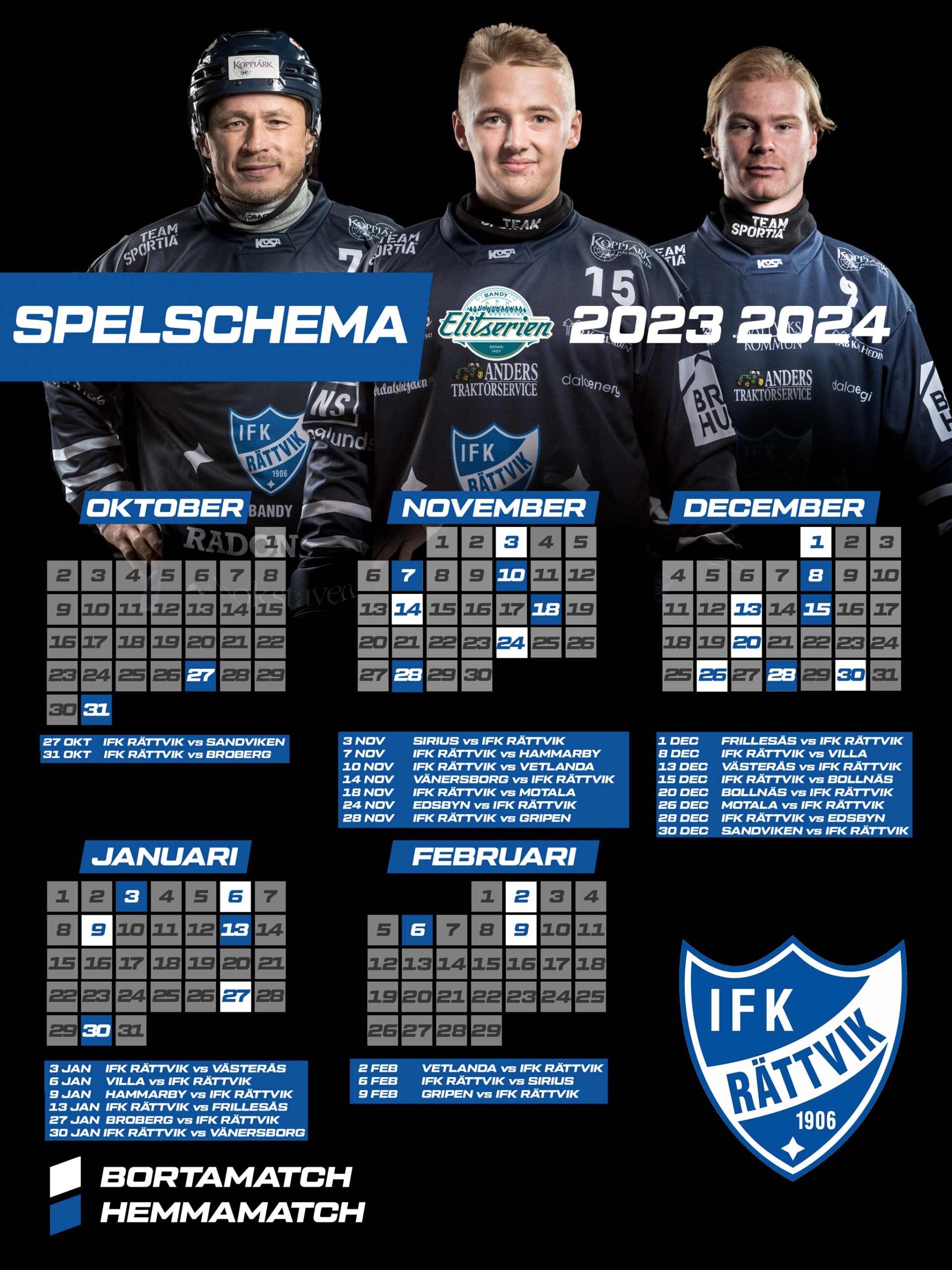 Herrarnas spelschema, säsongen 23/24 Så här ser säsongens spelschema ut för IFK Rättviks herrar i Elitserien 23/24. Vi har mycket spänning att se fram mot!