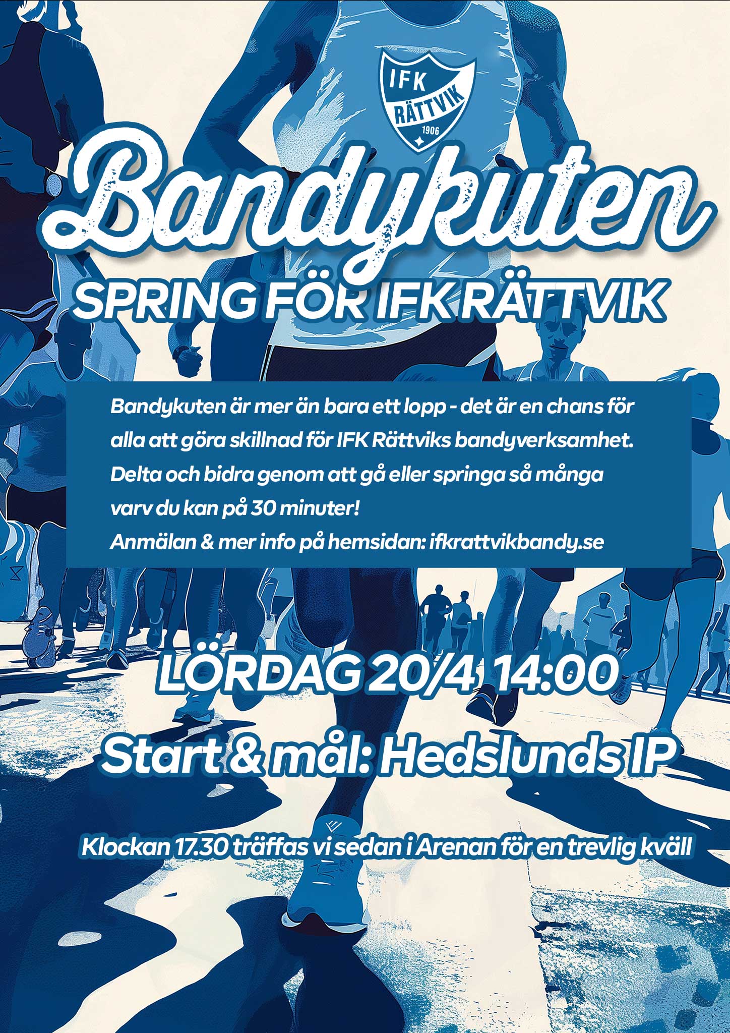 Lördag den 20 april är det dags för Bandykuten på Hedslunds IP och Rättvik arena – Ett välgörenhetslopp för alla, ung som gammal, snabb eller långsam, där du som deltar bidrar till IFK Rättvik Bandys verksamhet.