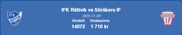 Vinnare i söndagens 50/50-lotteri Vinnande lottnummer i söndagens 50/50-lotteri är 14072, stort grattis till dig som vinner 1710 kr! Vinnaren meddelas via sms. Stort tack till alla som bidraget till lotteriet och föreningen! Håll utkik för nästa chans att vinna.